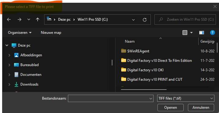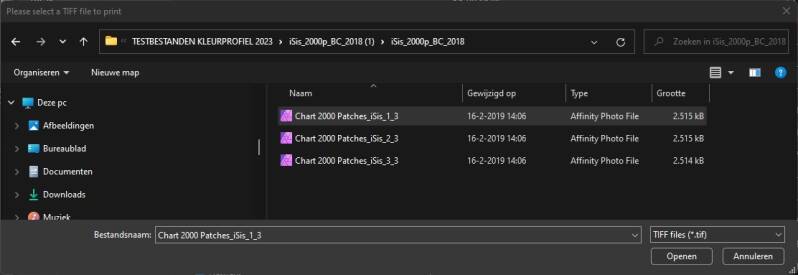 Let op: Als de dialoog geen bestanden laat zien klik je rechtsonder het pop-up venster open en kies je voor "Alle bestanden" in plaats van "TIFF files".